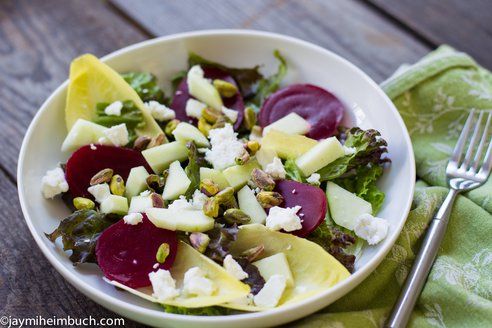 This colorful salad is filled with flavor and texture, from the sweetness of roasted beets to tart, crunchy apples to savory pistachios. It is a satisfying option for every mood.