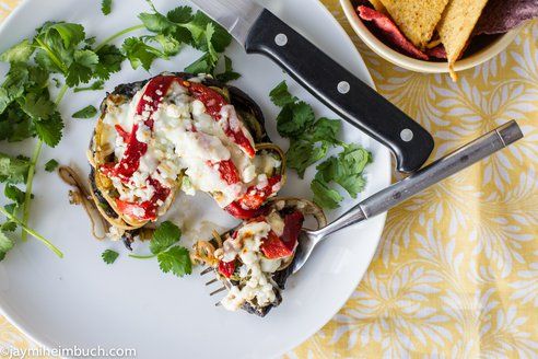 Grilled portobello mushrooms stuffed with sauteed leeks and spinach