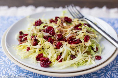 Shredded cabbage salad with cranberries and balsamic dressing