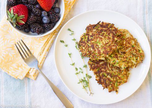 These little crispy snacks are great for brunches, or for a healthier way to satisfy that craving for some fried comfort food. Shredding the zucchini may be the most time consuming part, and that goes quickly enough. Just stir the ingredients together, toss them in the pan to brown, and tah dah! Crispy yumminess.