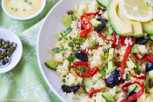 Couscous and avocado salad with dijon-thyme vinaigrette