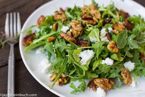 Arugula salad with thyme-toasted walnuts