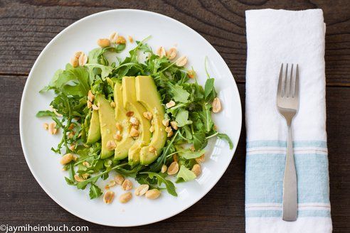 Avocado salad with roasted peanuts and ginger dressing