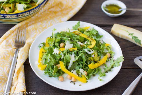 Arugula and chickpea salad with lemon dill vinaigrette