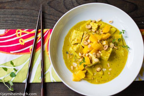 © Jaymi Heimbuch Coconut curry tofu with green apple, mango and peanuts This amazing curry is filled with sweet and spicy flavors, yet is simple and speedy to put together. The most time is spent on allowing the curry to simmer and thicken, and for the apple to cook through. Simple to put together, and speedy to cook.