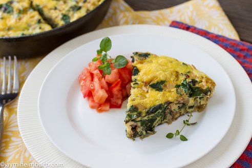 Simple, savory, and so satisfying! This delicious frittata is great for a weekend breakfast or brunch treat. It takes the most time on the stove top, sauteeing the onions and chard, with just a few minutes in the oven finishing it up. A delicious and filling meal in under 30 minutes.