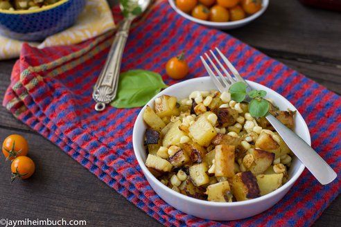 Summer time isn't complete without some good skillet meals featuring country-style potatoes and corn. This warm and spicy salad is a perfect side dish for picnics and BBQs all summer long.