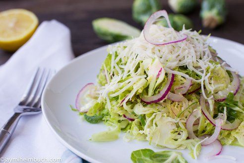 Shaved Brussels sprout salad with red onions and lemon-dijon dressing
