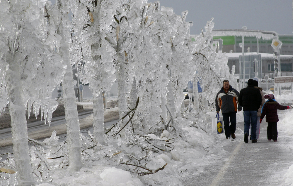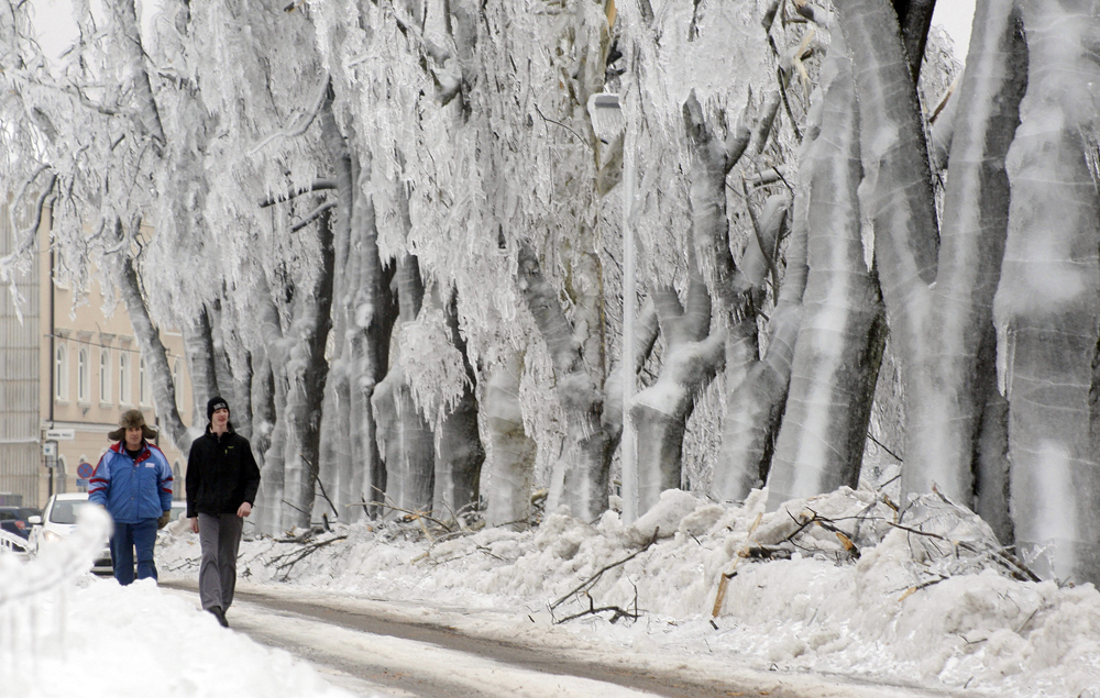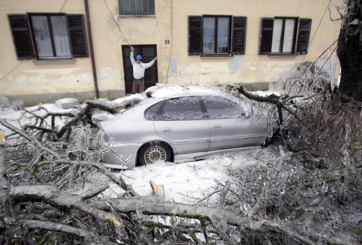 Unexpected rain in the west rapidly turned to ice, entombing cars, trains, ATMS, and power lines in addition to half of Slovenia’s forests (roughly 1.2 million acres).