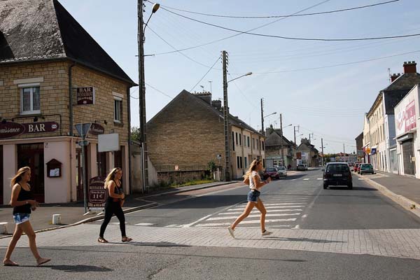 Girls cross the street at the junction of Rue Holgate and RN13, where that vehicle was.
