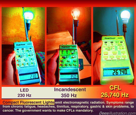 Electrical sensitivity, also known as electrical hypersensitivity and electromagnet hypersensitivity, is a recognized disability with chronic and systematic reactions to electromagnet fields given off by wiring, electrical equipment, transformers and florescent lighting — including CFLs. Approximately 8 million Americans experience electrical sensitivities, according to the Research & Training Center on Independent Living. It causes nervous system symptoms such as headache, fatigue, stress and sleep disturbances; skin symptoms including prickling, burning sensations and rashes, and pain and ache to muscles, as well as many other health problems. CFLs contribute to electrical sensitivity by emitting electromagnetic radiation.