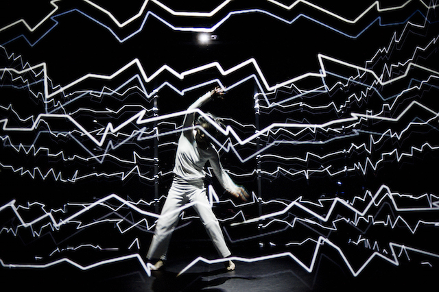 Its appeal lies in the one-on-one exchange that takes place between performer and complex programming. Though Mondot and Bardainne, who in the past set a performance of 11 breakdancers against a digital backdrop, often mine theoretical and mathematical sources for inspiration for their work, they rely on the empirical study of the world around them as their guide.